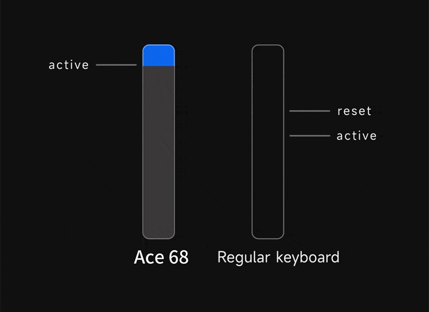 Tehnologia Rapid Trigger din MCHOSE Ace 68 ajustează dinamic punctul de activare al tastelor, oferind activare și dezactivare instantanee fără întârzierile punctelor fixe.